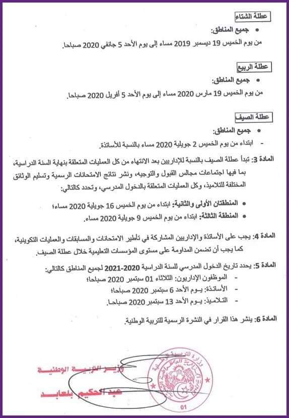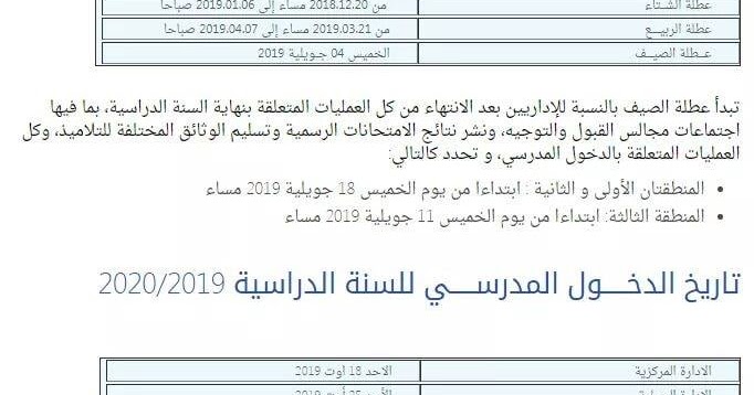 رزنامة العطـل المدرسية للسنة الدراسية 2020 2019 وتاريخ الدخول المدرسي للسنة الدراسية 2021 2020 وزارة التربية الوطنية