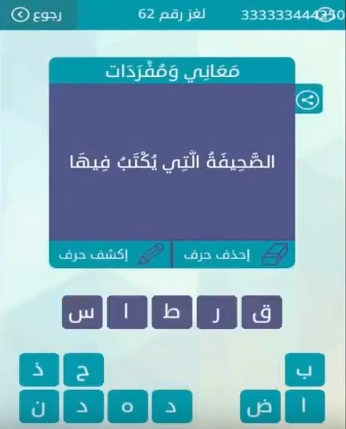 جواب سؤال الصحيفة التى يكتب فيها من لعبة وصلة للمجموعة السابعة لغز رقم 62 صقور الإبدآع