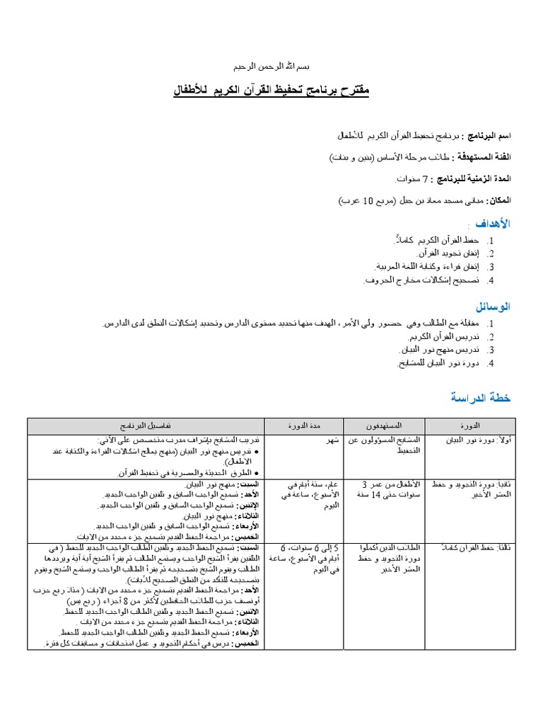 مقترح برنامج تحفيظ القران الكريم للاطفال