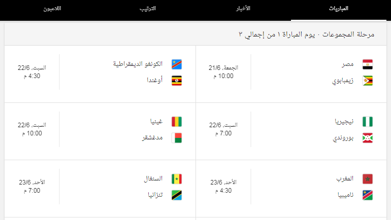 جدول مباريات كاس الامم الافريقية 2019 Pdf