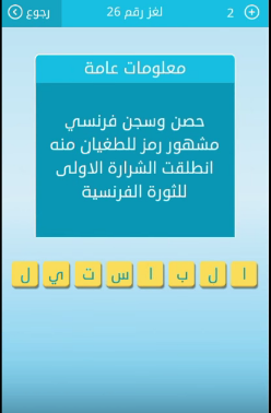 حل حصن وسجن فرنسى مشهور رمز للطغيان منه انطلقت الشرارة الاولى للثورة الفرنسية من لعبة رشفة لغز رقم 2 صقور الإبدآع