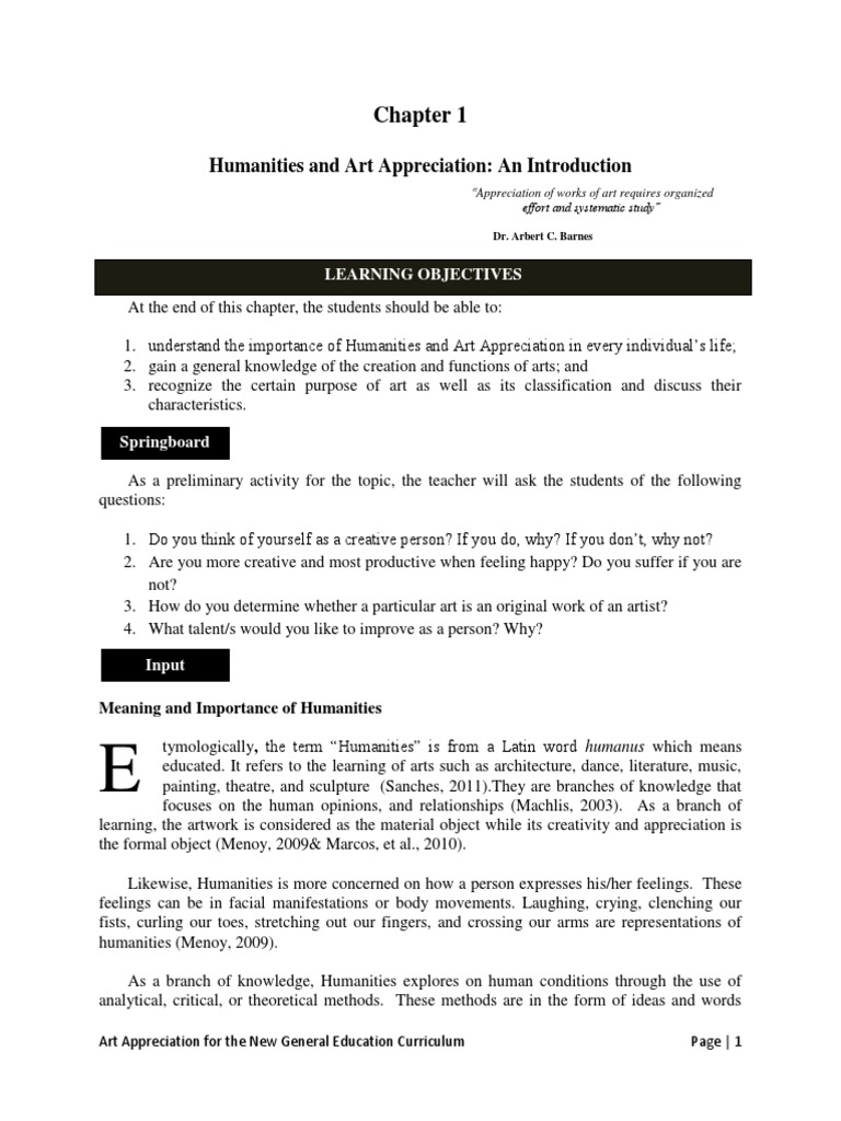 Art Appreciation Humanities And Art An Introduction